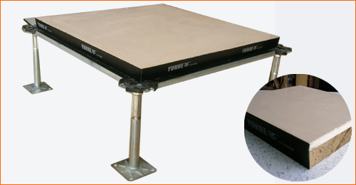 系统组装由地板、桁梁、支座组成。桁梁和自身高度可调的支 座用螺钉连结成稳固的下部支承系统,地板镶嵌入桁梁围成的方格内。